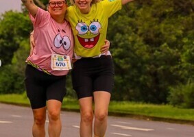 CORREDORES SE AQUECEM PARA A CORRIDA DO BOB ESPONJA