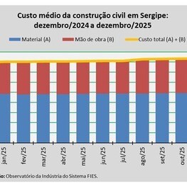 Análise realizada pelo Sistema FIES, com base nos dados do SINAPI, uma produção conjunta do IBGE e da CEF, revelou que o custo médio da construção em Sergipe, por metro quadrado (m²), em dezembro de 2025, aumentou 0,2%.