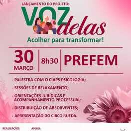 Em alusão ao Dia Internacional da Mulher, celebrado em 8 de março, a Defensoria Pública realizará na segunda-feira (30), às 8h30, no PREFEM, o lançamento do projeto “Voz Delas: Acolher para Transformar” com diversos serviços.