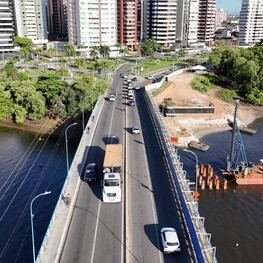 A nova estrutura, paralela à ponte existente, terá 160 metros de extensão, três faixas de rolamento, ciclovia, faixas exclusivas para pedestres, guarda-corpos, pavimentação asfáltica moderna e iluminação em LED. Com a ampliação, a capacidade de tráfego será dobrada, tornando o deslocamento mais ágil e seguro. Além da duplicação, a obra também inclui melhorias nos acessos, com a criação de uma nova faixa de tráfego até a Avenida Francisco Porto, a ampliação do sistema de drenagem para evitar alagamentos e a recuperação do calçadão da 13 de Julho, que será integrado à ciclovia e às áreas de passeio.