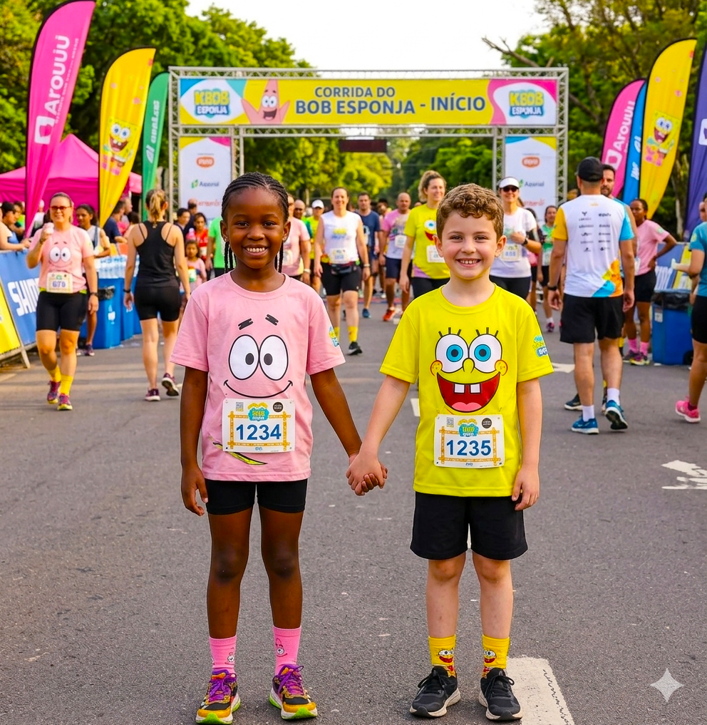Os kits sorteados incluem duas camisetas temáticas, sendo uma do Bob Esponja e outra do inseparável Patrick Estrela, incentivando a participação em dupla e valorizando o espírito de amizade que marca o evento.